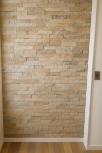 白一色の壁から質感のある石目調に変えることで、部屋全体が明るく、上質な雰囲気に仕上がりました。