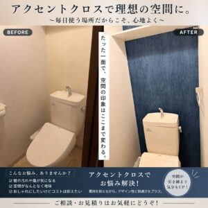 今回は、名古屋市内で実施した「トイレのアクセントクロス張り替え」の施工事例をご紹介します。たった一面のクロスを変えるだけで、空間の印象がここまで変わるという好例です。